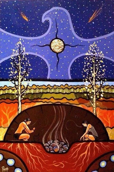 The sweat lodge is a sacred place of spiritual communication and cleansing. It is traditionally constructed from young willow saplings arranged in a specific pattern, with the doorway always facing east.
